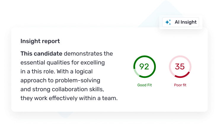 ניתן לשלב את המבחן כחלק מהריאיון AI או להשתמש בו ככלי עצמאי. כך או כך הוא יסייע לכם לזהות את המועמדים המתאימים ביותר ולנהל תהליך קבלת החלטות יעיל ומדויק.